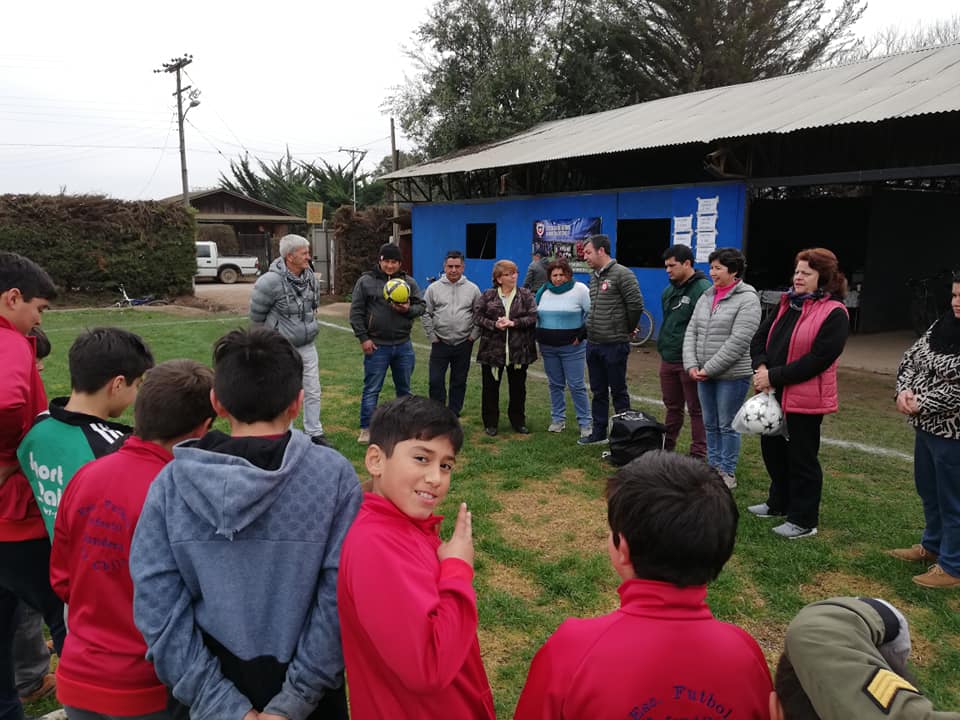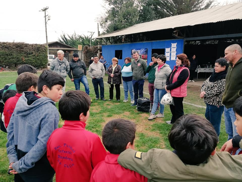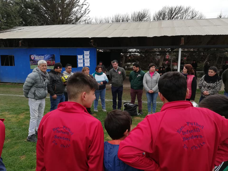 ALCALDE CARLOS ADASME HACE ENTREGA DE EQUIPAMIENTO COMPLETO A LA DIVISIÓN INFANTIL DE LA ESCUELA DE FÚTBOL SAN ANTONIO DE NALTAGUA, BANDERA DE CHILE