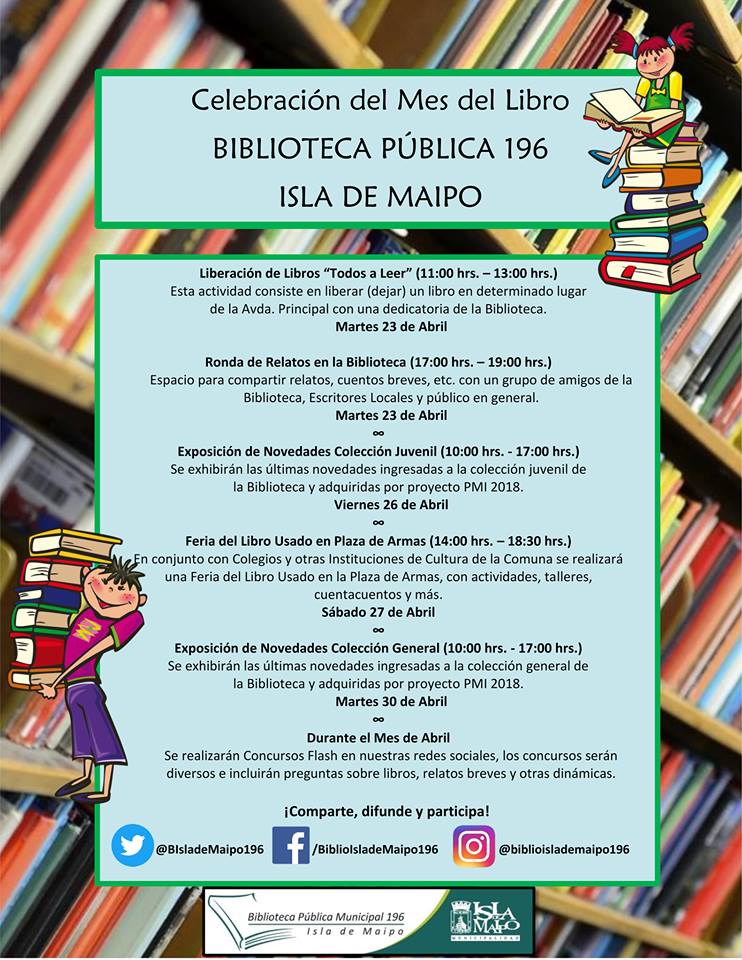 ACTIVIDADES QUE REALIZARÁ BIBLIOTECA PÚBLICA MUNICIPAL EN “MES DEL LIBRO”