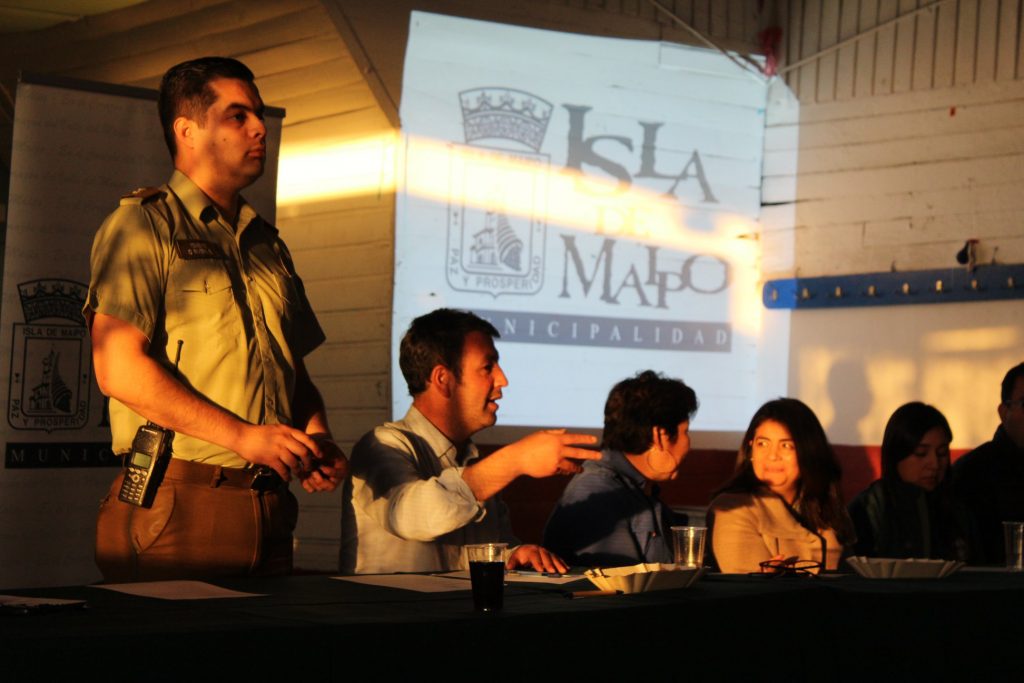 Una de las vecinas presentes en esta reunión fue Gloria Véliz, presidenta de la Unión Comunal de Isla Centro, quien agradeció esta iniciativa, para que los dirigentes puedan informar lo que está pasando en la comunidad, directamente del alcalde y las policías.