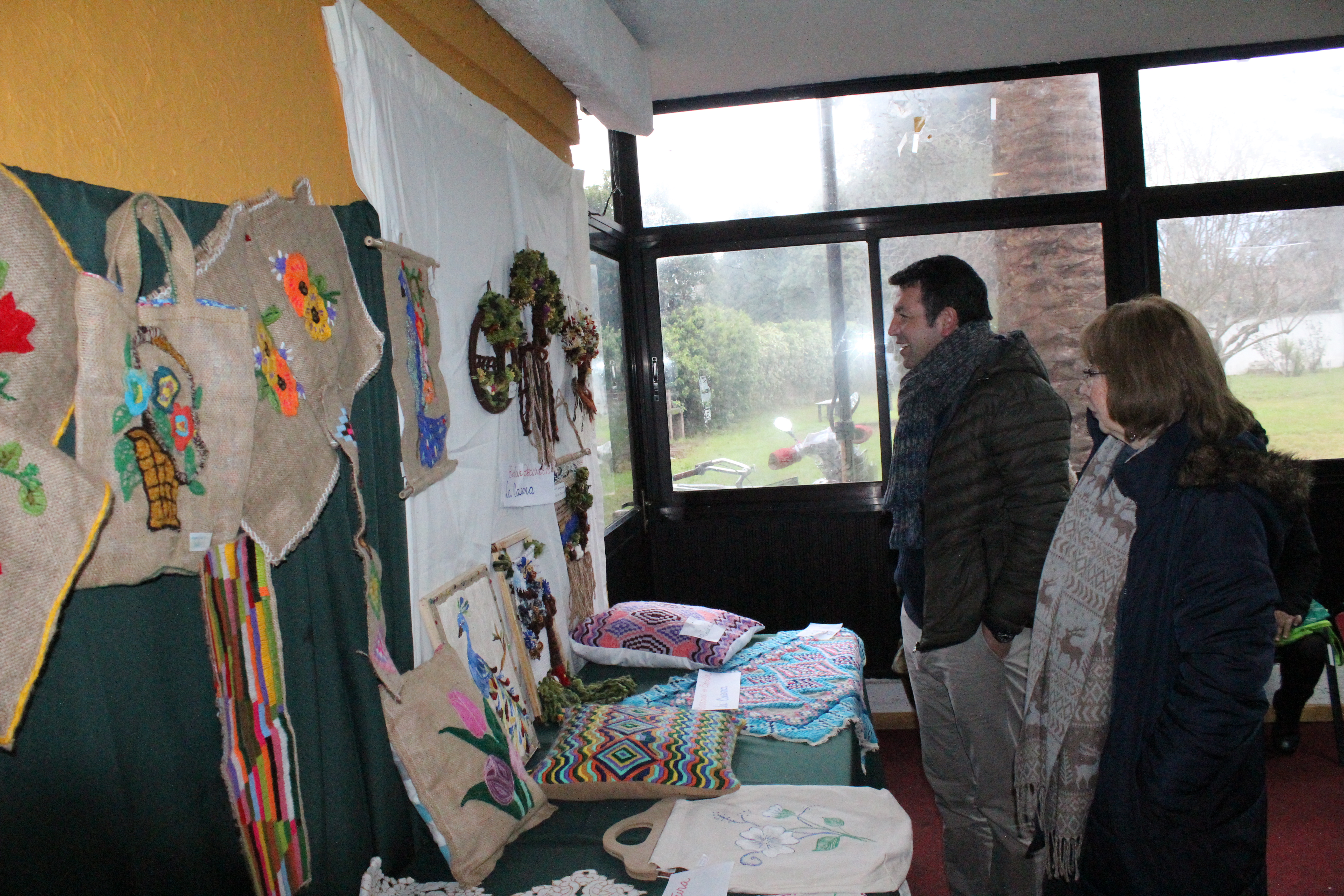 Ayer, en Casona Lévera, el alcalde Carlos Adasme, recorrió la muestra y se mostró gratamente sorprendido por la calidad de los trabajos presentados y que están hechos por isleñas de distintos sectores de la comuna.