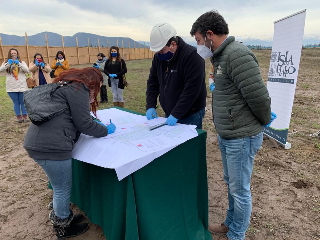 Al mediodía de este lunes 6 de julio, el alcalde Carlos Adasme encabezó la ceremonia de entrega de terreno e inicio oficial de la construcción del conjunto habitacional “Aires del Maipo”.