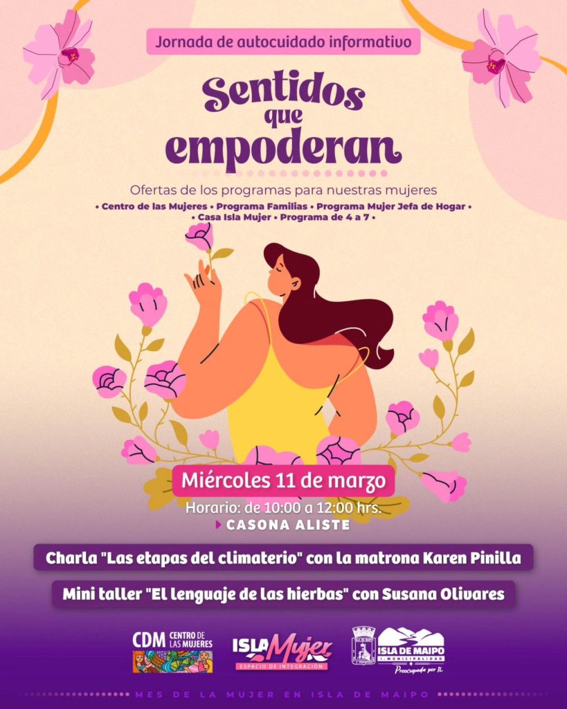 La actividad contará con la charla “Las etapas del climaterio” y el mini taller “El lenguaje de las hierbas”, este miércoles 11 de marzo, desde las 10:00 de la mañana al mediodía, en Casona Aliste (Av. Santelices 761).