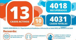 143° INFORME MINSAL: A 10 BAJÓ EL NÚMERO DE VECINOS POR COVID EN LA COMUNA