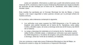 COMIENZA A REGIR ORDENANZA MUNICIPAL QUE REGULA TRÁNSITO VEHÍCULOS PESADOS