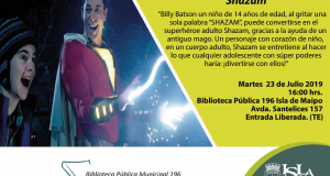 HOY MARTES 23 DE JULIO PELÍCULA “SHAZAM” EN “CINE EN TU BIBLIOTECA”