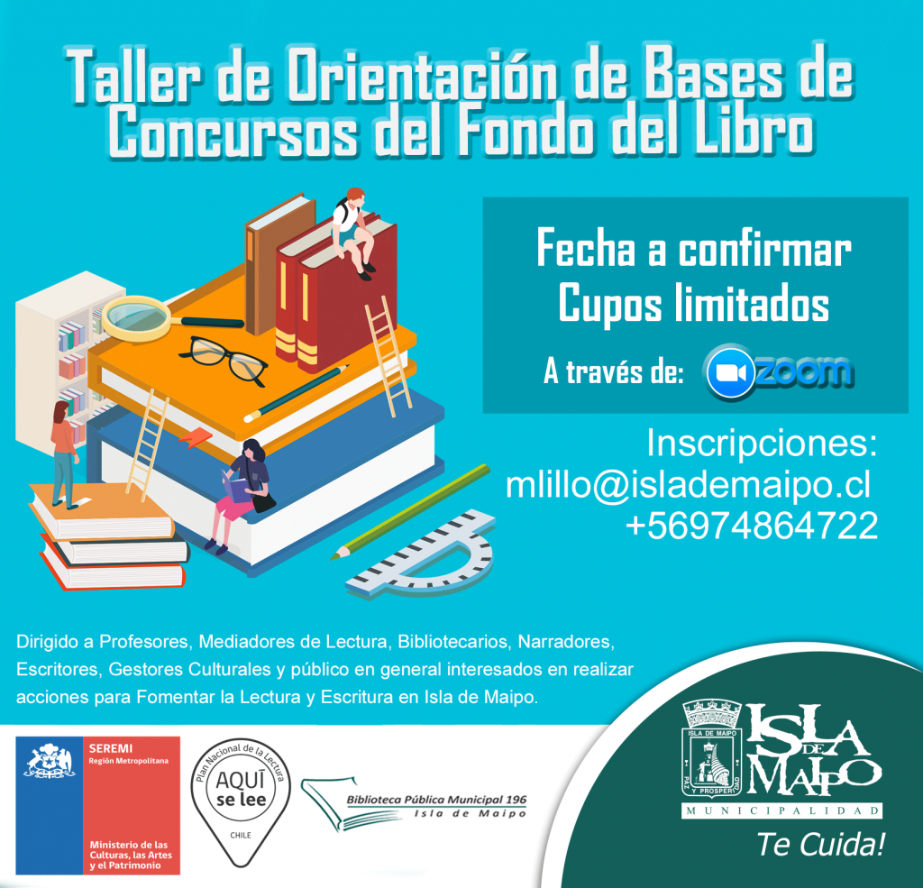 La Biblioteca Pública Municipal de Isla de Maipo extendió una invitación a todos los profesores, mediadores de lectura, bibliotecarios, narradores, escritores, gestores culturales y vecinos en general de la comuna a inscribirse en el taller de orientación para postular a los Fondos del Libro y la Lectura.