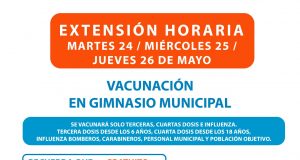 VACUNATORIO EXTIENDE HORARIO HASTA LAS 19.00 HORAS ESTE 24, 25 Y 26 DE JUNIO