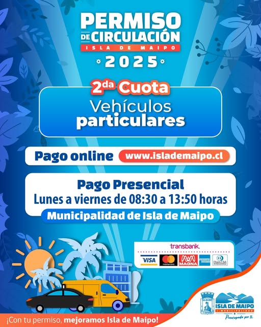 El trámite para vehículos particulares se puede realizar de manera presencial, de lunes a viernes de 8:30 a 13:50 horas en la municipalidad, o bien de manera online en el portal www.islademaipo.cl