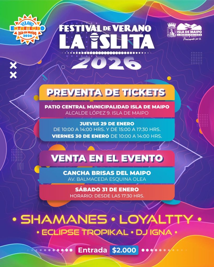 Este jueves 29 y viernes 30 de enero se realizará la preventa de entradas para el Festival de Verano La Islita 2026.