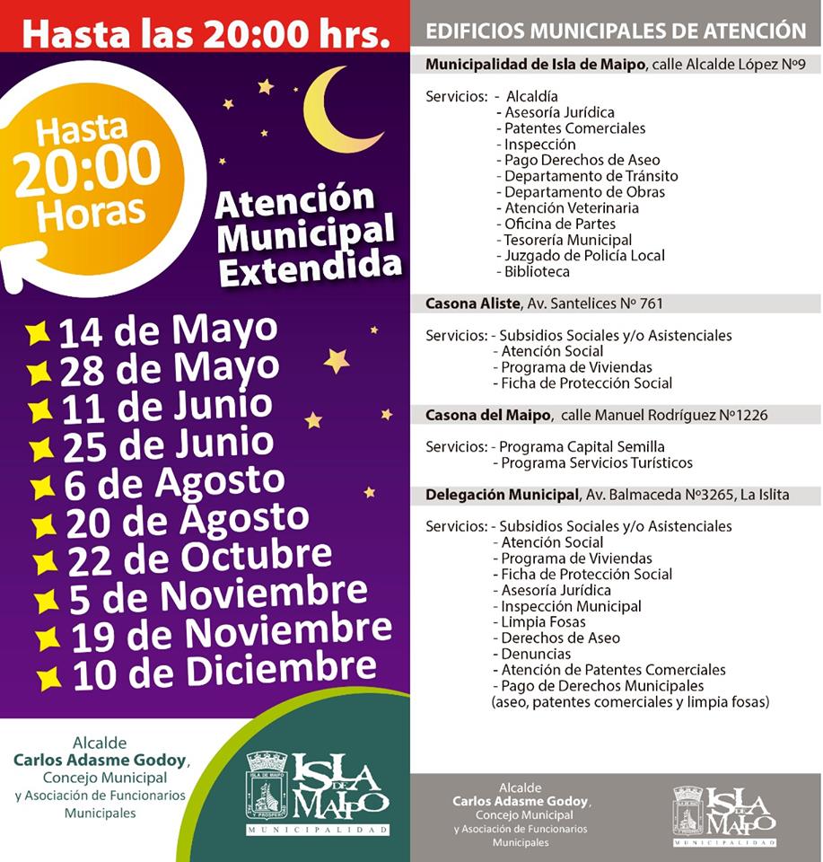 La segunda jornada se realizará el próximo martes 14 de mayo en todas las oficinas de atención de público de la municipalidad, Casona del Maipo, Casona Aliste, y Delegación Municipal de La Islita.