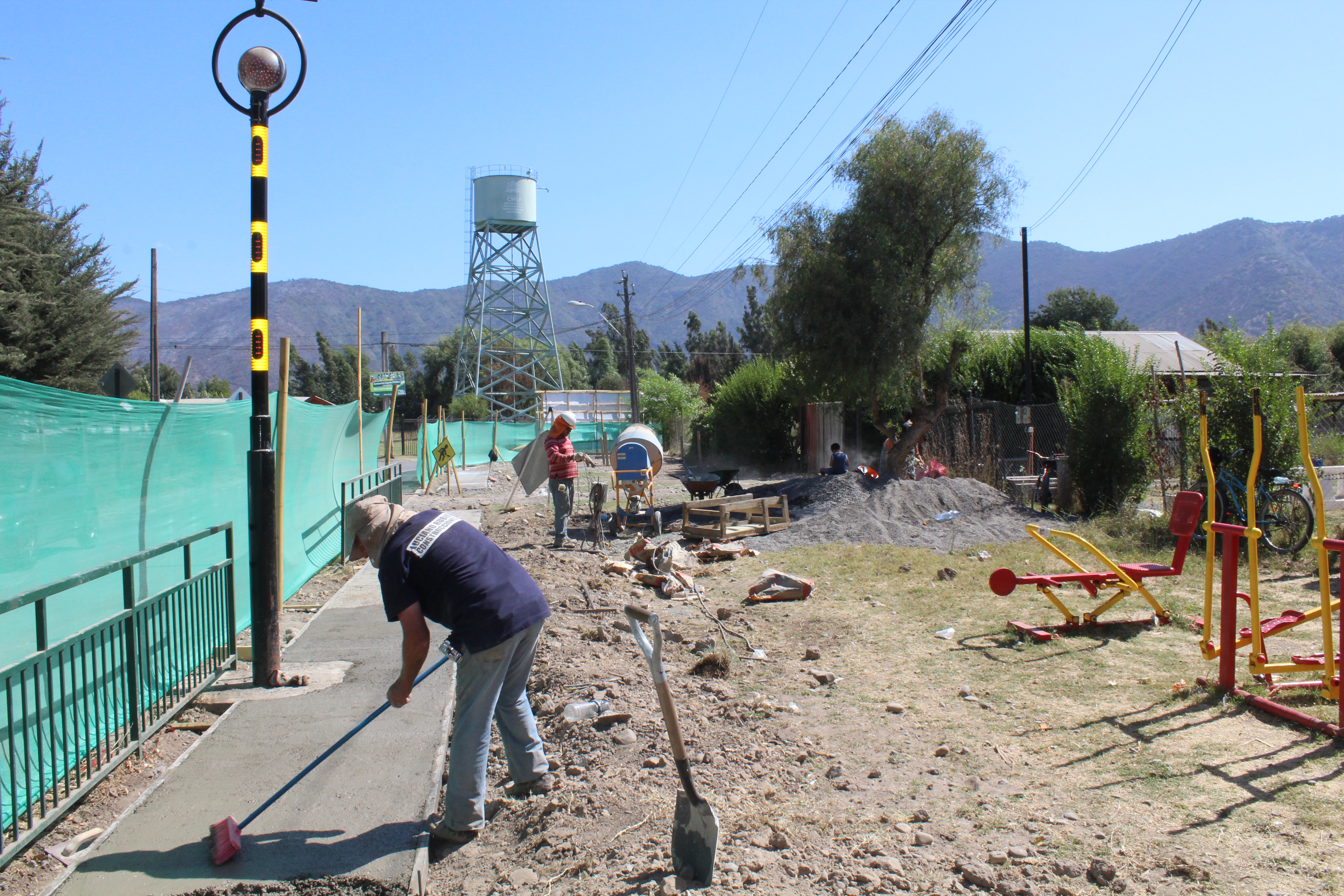En Las Mercedes, a un costado de la Escuela Municipal, también se está construyendo una zona de juegos y recreación para niños y familia del sector. La obra también viene a cumplir un compromiso con la comunidad que anhelaba una plaza y espacio de recreación.