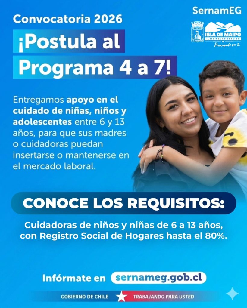 El municipio invita a todas las vecinas a conocer requisitos e inscribirse en la convocatoria 2026 del Programa “de 4 a 7” impulsado por el Servicio Nacional de la Mujer y Equidad de Género.