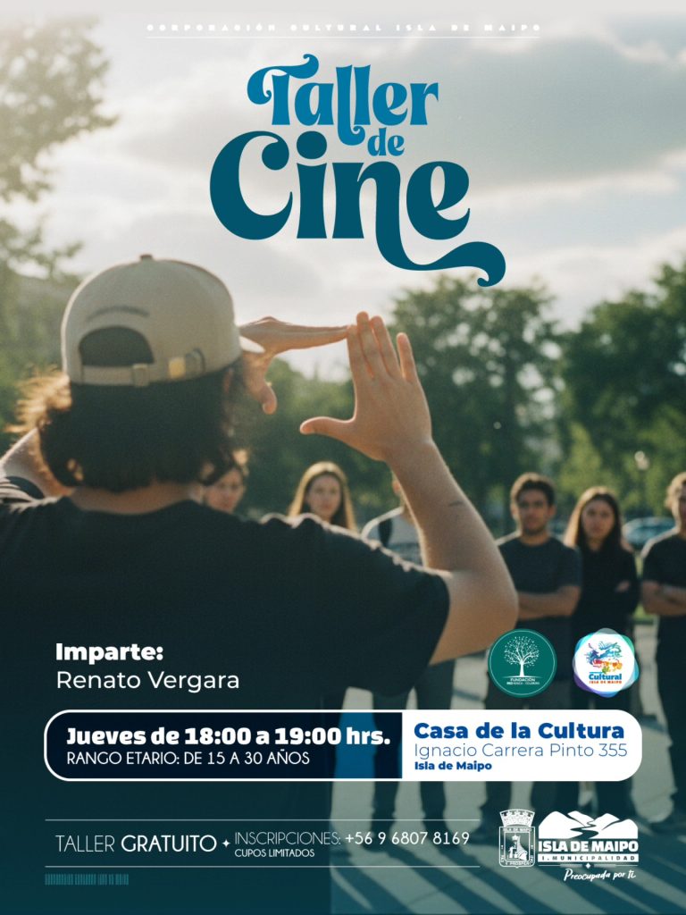 La Corporación Cultural de Isla de Maipo invita a todos los vecinos de 18 a 30 años de edad de la comuna a inscribirse gratis en los cupos limitados para el Taller de Cine.