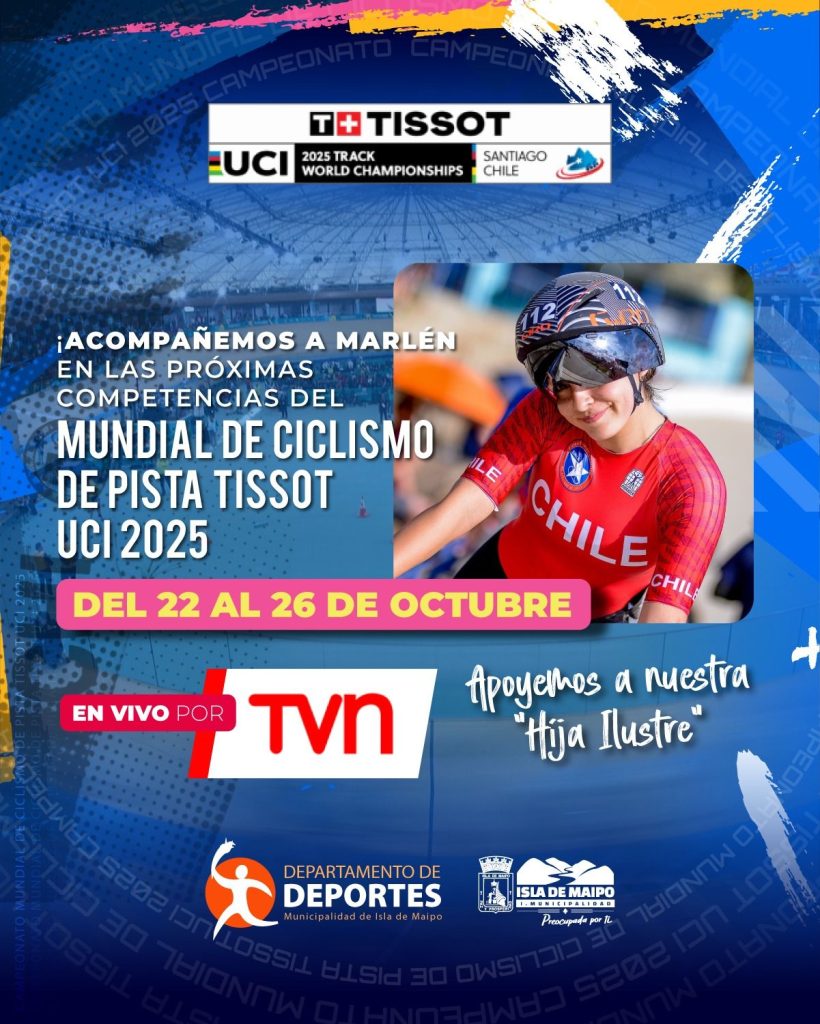 En paralelo, la ciclista e “Hija Ilustre” de Isla de Maipo, Marlén Rojas Lescot, disputará el Mundial de Ciclismo de Pista que se desarrollará entre el 22 y 26 de octubre en el velódromo de Peñalolén.
