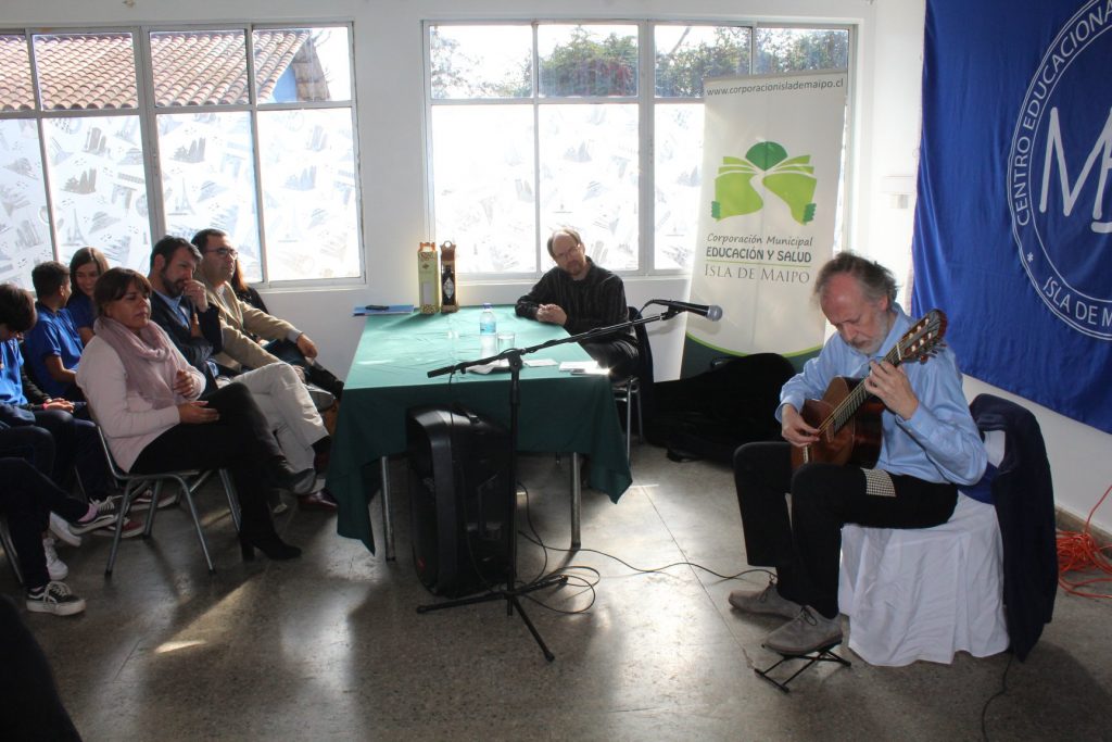 En el marco del convenio de colaboración existente entre la Facultad de Arte de la U. de Chile y los establecimientos educacionales de la comuna de Isla de Maipo, el alcalde Carlos Adasme, junto al Secretario General de la Corporación de Educación, Sergio Montenegro y la directora Roxana Céspedes, participaron durante la mañana de hoy, en el encuentro/concierto de su decano Luis Orlandini Robert, con alumnos del Mario Bertero.