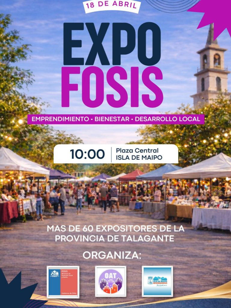 EXPO FOSIS 2026 ESTE SÁBADO 18 DE ABRIL EN PLAZA CENTRAL DE ISLA DE MAIPO