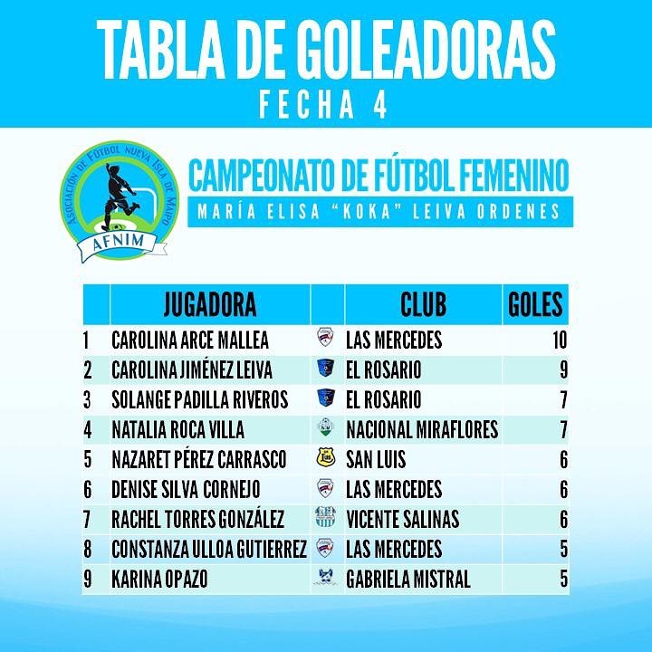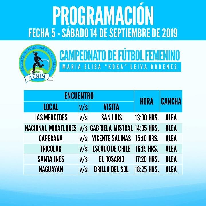🏆 AFNIM informa programación Torneo Femenino María Elisa Koka Leiva Órdenes para este fin de semana (en cancha Olea) ⚽