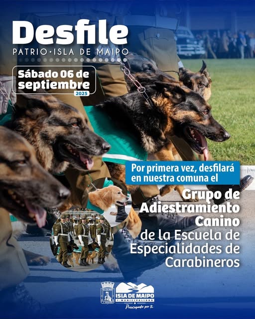 Municipio confirma la participación, por primera vez en un Desfile Cívico – Militar de Isla de Maipo, del Grupo de Adiestramiento Canino de la Escuela de Especialidades de Carabineros de Chile.