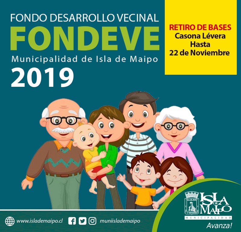 El pasado viernes se lanzó en Casona Lévera el proceso de entrega de bases y postulación a los Fondos de Desarrollo Vecinal, FONDEVE 2019. Este año el municipio dispone de $21 millones de inversión para financiar proyectos de organizaciones sociales territoriales, funcionales, y club de adulto mayor.