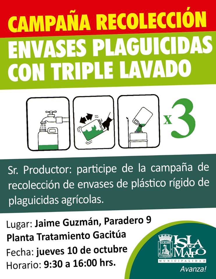 La municipalidad de Isla de Maipo a través de su Unidad de Medioambiente, invita a los agricultores de la comuna a ser parte de la campaña de recolección de envases fitosanitarios o plaguicidas de este jueves 10 de octubre.