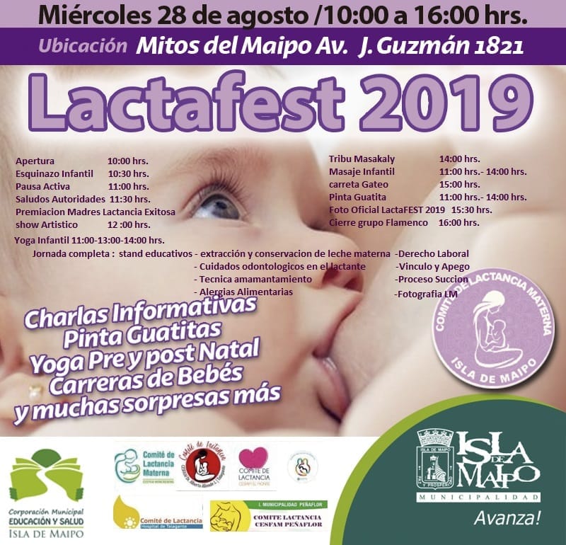 Compartimos horario de las actividades y charlas que se realizarán este miércoles 28 en Isla de Maipo en “LACTAFEST 2019”.