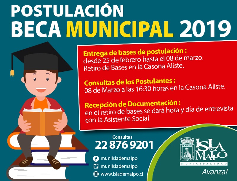 Hoy viernes 8 de marzo concluye el proceso de retiro de base para postular a la Beca Municipal 2019, que se inició el pasado lunes 25 de febrero en La Casona Aliste, ubicada en Av. Santelices #761.