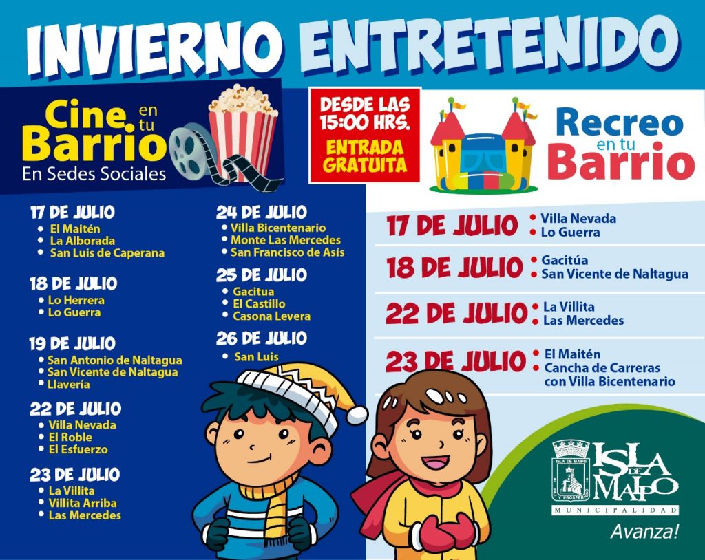 Todos invitados a revisar toda la programación en la imagen para que se diviertan con este “Invierno Entretenido”.