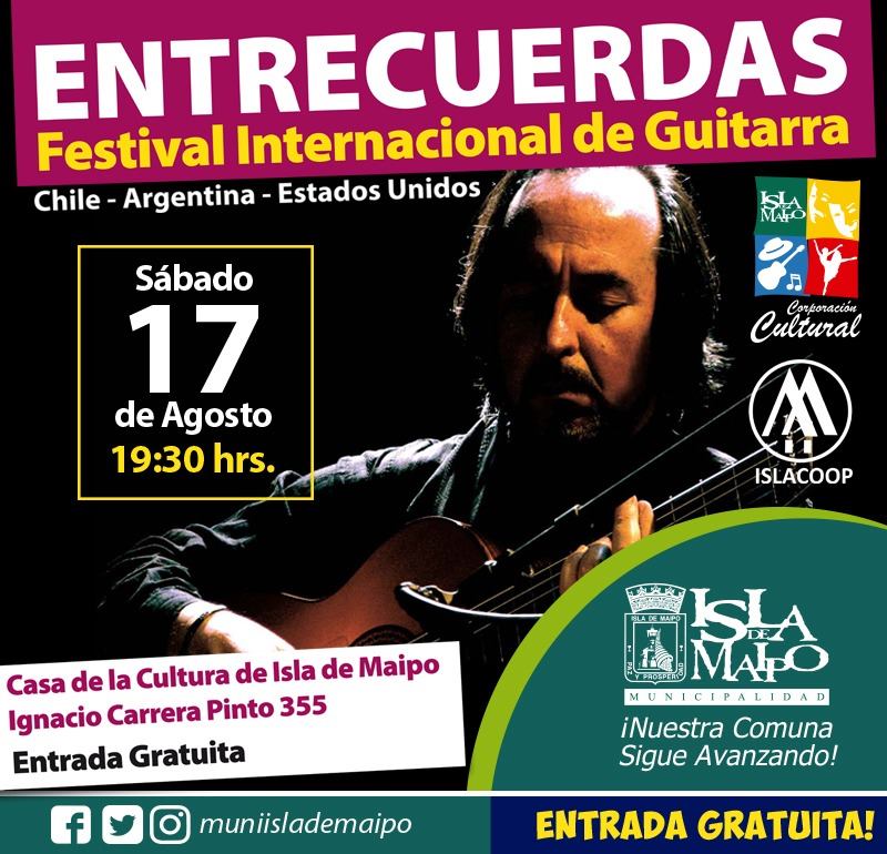 Una nueva versión del Festival Internacional de Guitarra “Entrecuerdas” se realizará mañana sábado 17 de agosto en Isla de Maipo.