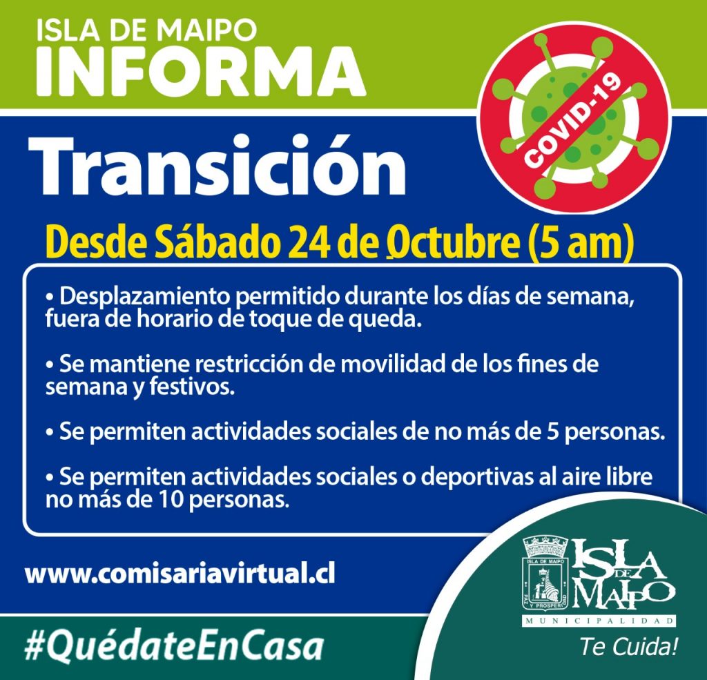 ISLA DE MAIPO RETROCEDE A PASO 2 “TRANSICIÓN” DESDE ESTE 24 DE OCTUBRE