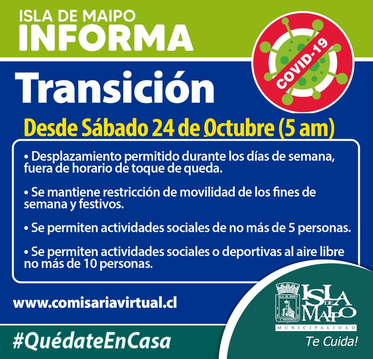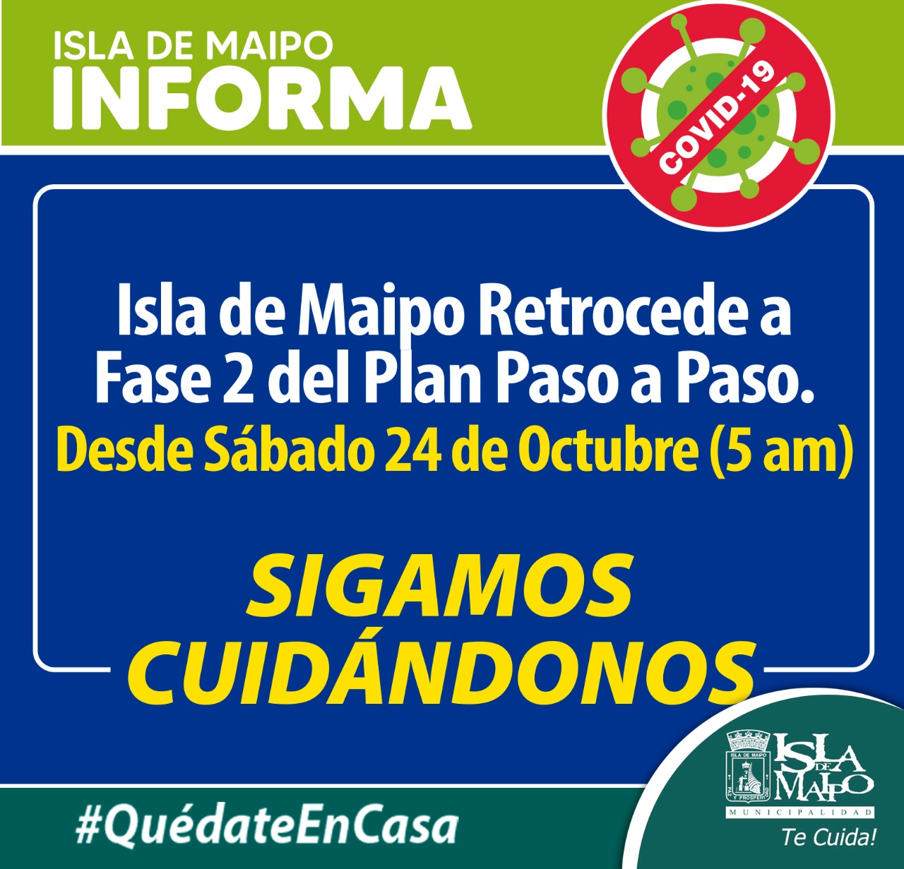 El municipio de Isla de Maipo emitió un comunicado oficial respecto a esta decisión, detallando las restricciones que esta medida significa en la práctica.