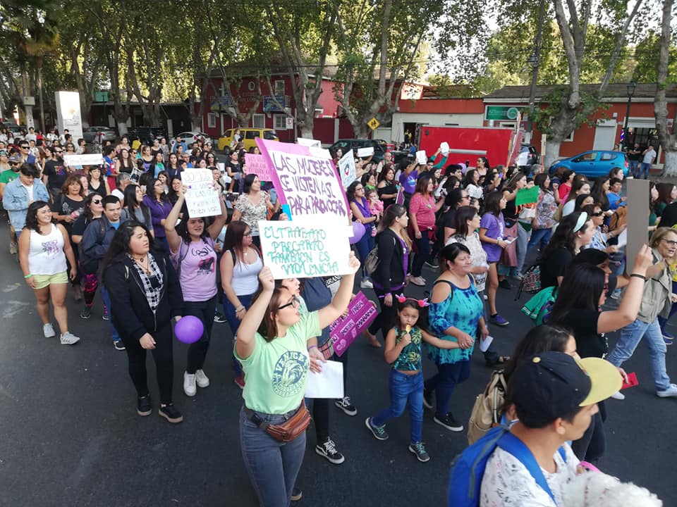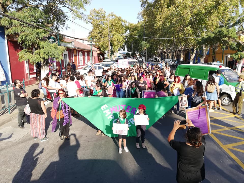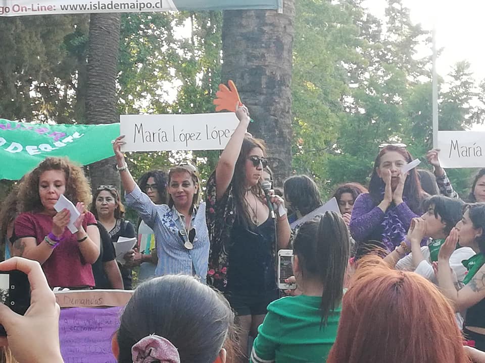 Al ritmo de la batucada y con gritos alusivos a sus demandas, el grupo marchó por la avenida principal de la Isla de Maipo resguardadas por personal municipal y Carabineros, para llegar hasta la plaza de Armas donde comenzaron los discursos y recuerdos de mujeres emblemáticas fallecidas en la comuna.