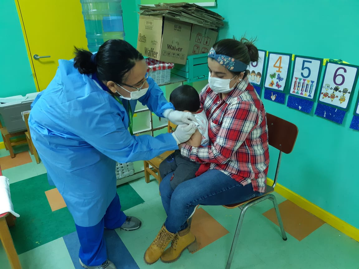 Entre las 9 de la mañana y el mediodía, los equipos de salud municipal acudieron a los respectivos establecimientos para inmunizar a más de 600 niños y niñas de 6 meses a 5° año básico.