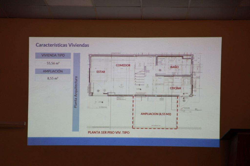 La Oficina Municipal de Vivienda, la Entidad Patrocinante “Identidades” y Constructora Terracon, expusieron las dimensiones de las casas, distribución de los espacios públicos, áreas verdes, juegos infantiles y etapas de avance de este proyecto.