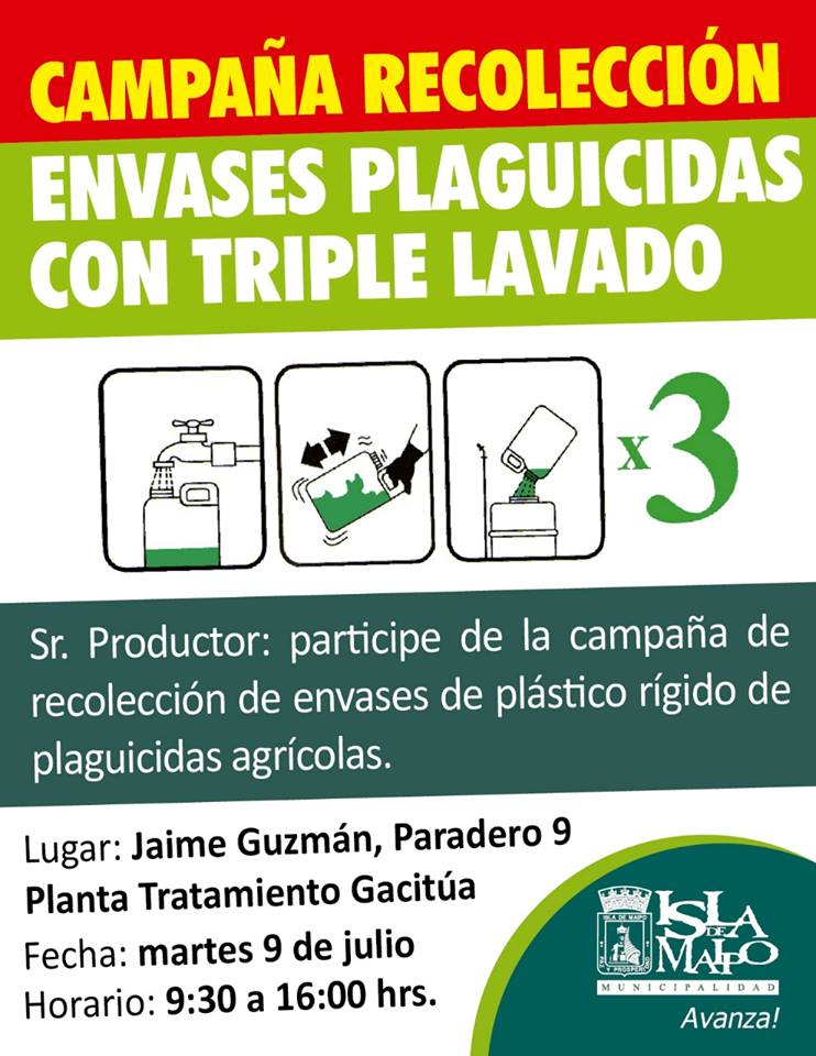Para incentivar el correcto manejo de envases de uso agrícola según la normativa legal del SAG, este martes 9 de julio el municipio realizará un nuevo operativo de recolección de envases fitosanitarios y fertilizantes foliares ya utilizados en Isla de Maipo.