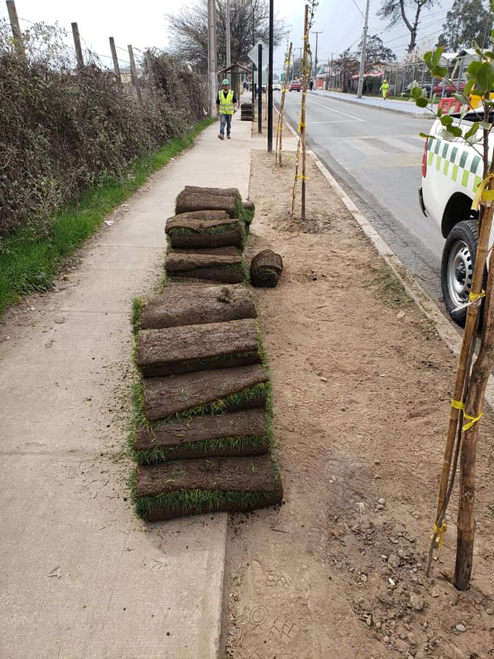 Este lunes se inici贸 la instalaci贸n de 1500m2 de pasto en el tramo de Av. Balmaceda intervenido por las obras de mejoramiento municipal.