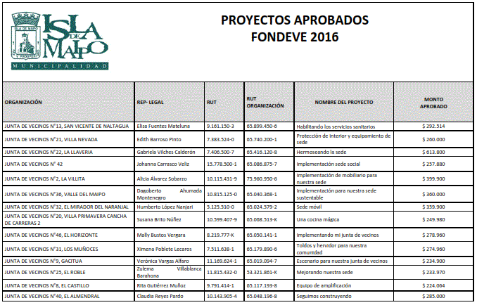 RESULTADOS FONDEVE MUNICIPAL 2016