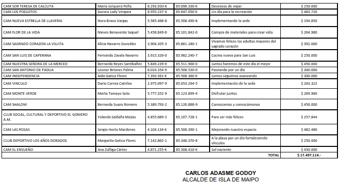 El Concejo Municipal, presidido por el alcalde Carlos Adasme, determinó en su última sesión la nómina de las organizaciones que se hicieron merecedoras del Fondeve Municipal.