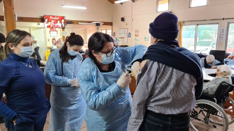 Valeria Riquelme, enfermera del Cesfam de Villa El Maitén, destacó la importancia de inocular a estos adultos mayores directamente en el hogar para evitar cualquier riesgo de contagio en el exterior.