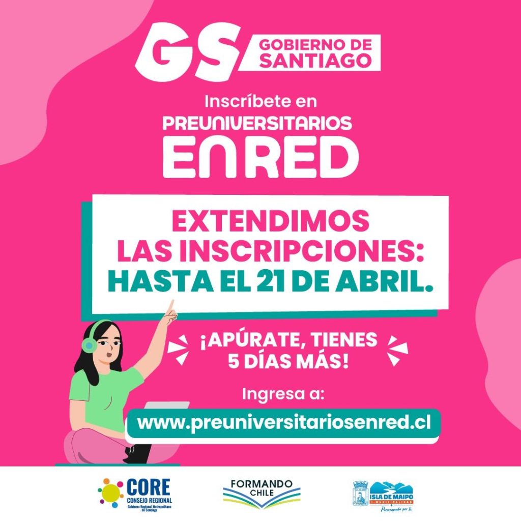 Al menos por una semana más se extiende el plazo de inscripción para que estudiantes y vecinos que rendirán la PAES 2024 participen de los preuniversitarios “EnRed” que impulsa el Gobierno de Santiago.