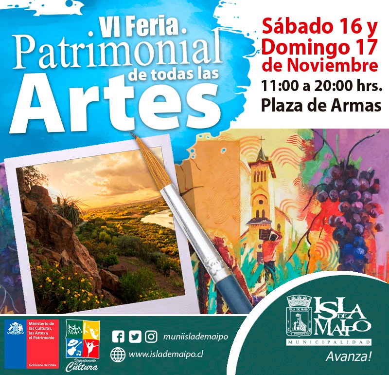 Tras la votación democrática de los artistas participantes de la “VI Feria Patrimonial de Todas las Artes de Isla de Maipo”, se decidió postergar esta actividad cultural hasta nuevo aviso.