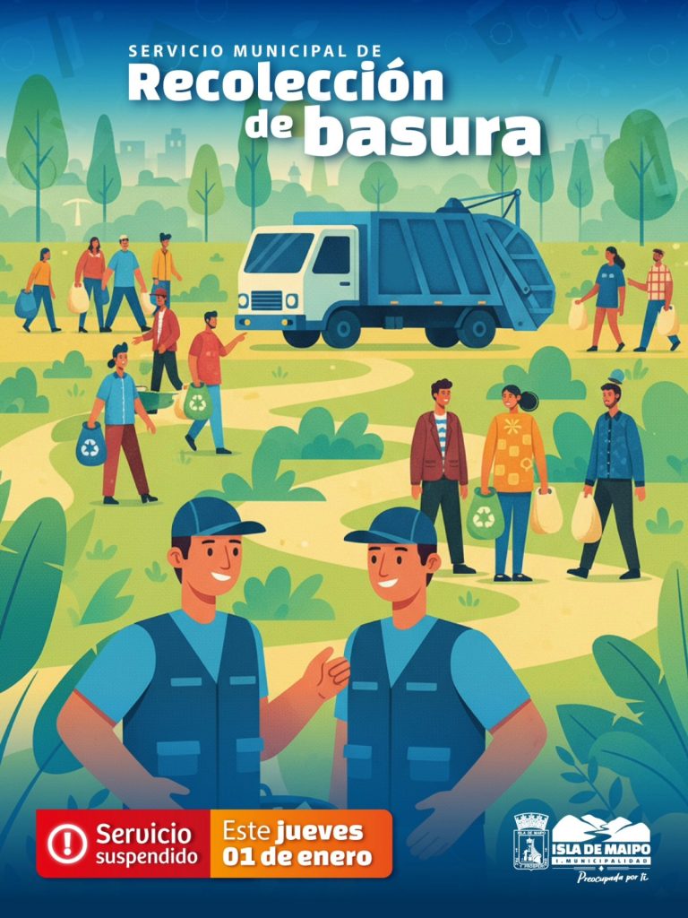 El municipio recuerda que por feriado irrenunciable, este 1 de enero de 2026 no habrá retiro de basura domiciliaria en toda Isla de Maipo.