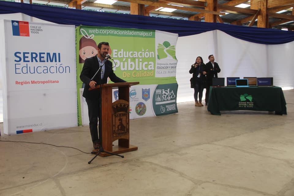 Esta mañana en el Colegio Efraín Maldonado Torres, el alcalde Carlos Adasme encabezó la ceremonia de entrega de 262 computadores a igual número de alumnos de 7° año básico de Isla de Maipo. El beneficio se enmarca en los programas de gobierno “Yo elijo mi PC” y “Me Conecto para Aprender”, destinado a estudiantes de establecimientos municipales y particulares subvencionados de nuestra comuna.