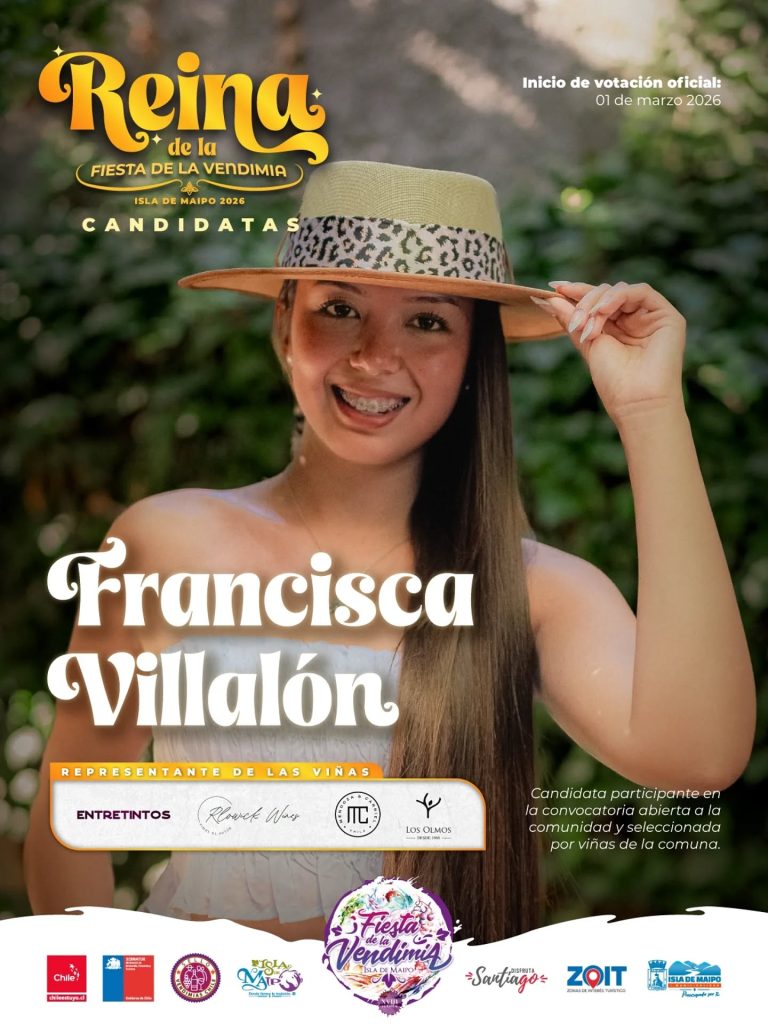 Francisca Polett Villalón Alvial de 19 años de edad, residente de Villa Aires del Maipo y apadrinada por las viñas Entre Tintos, Los Olmos, RLowick, Mendoza & Carriel.