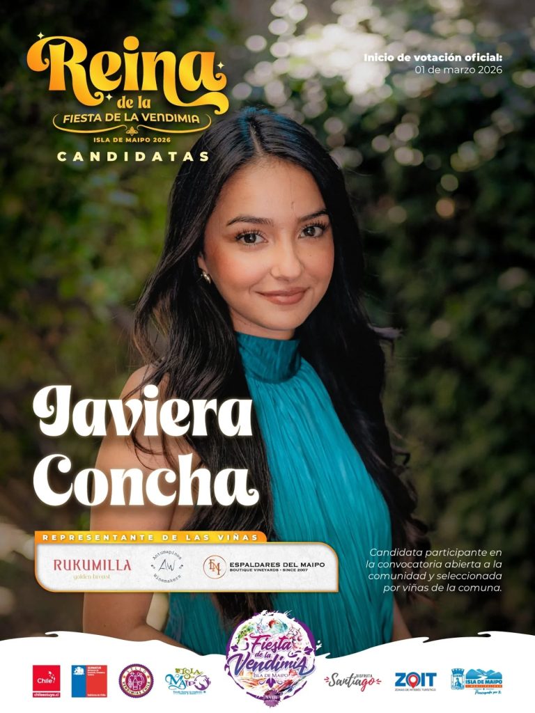 Javiera Constanza Concha Jorquera de 20 años de edad, residente en Villa Bicentenario (La Islita), y apadrinada por las viñas Antumapinos, Espaldares El Maipo y Rukumilla.